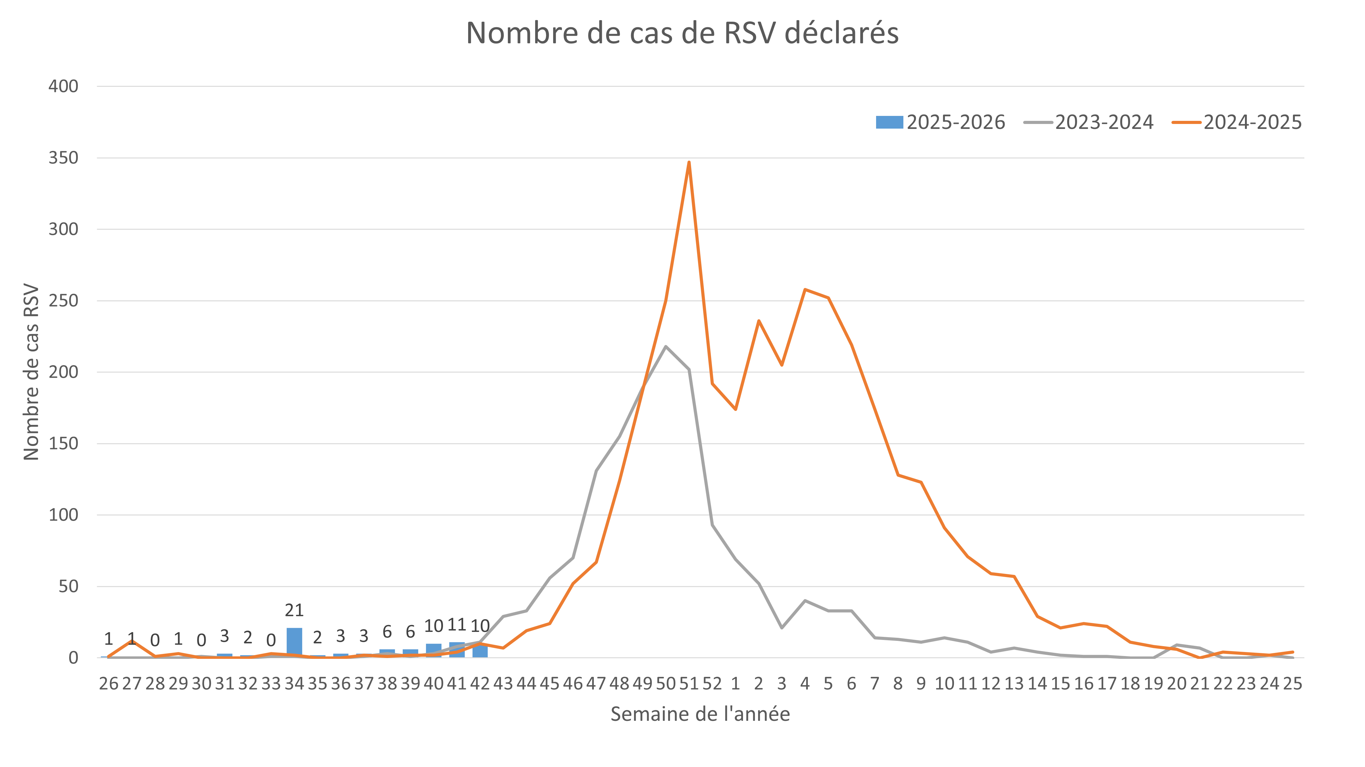 Virus respiratoire syncytial (RSV): niveau bas du nombre de cas